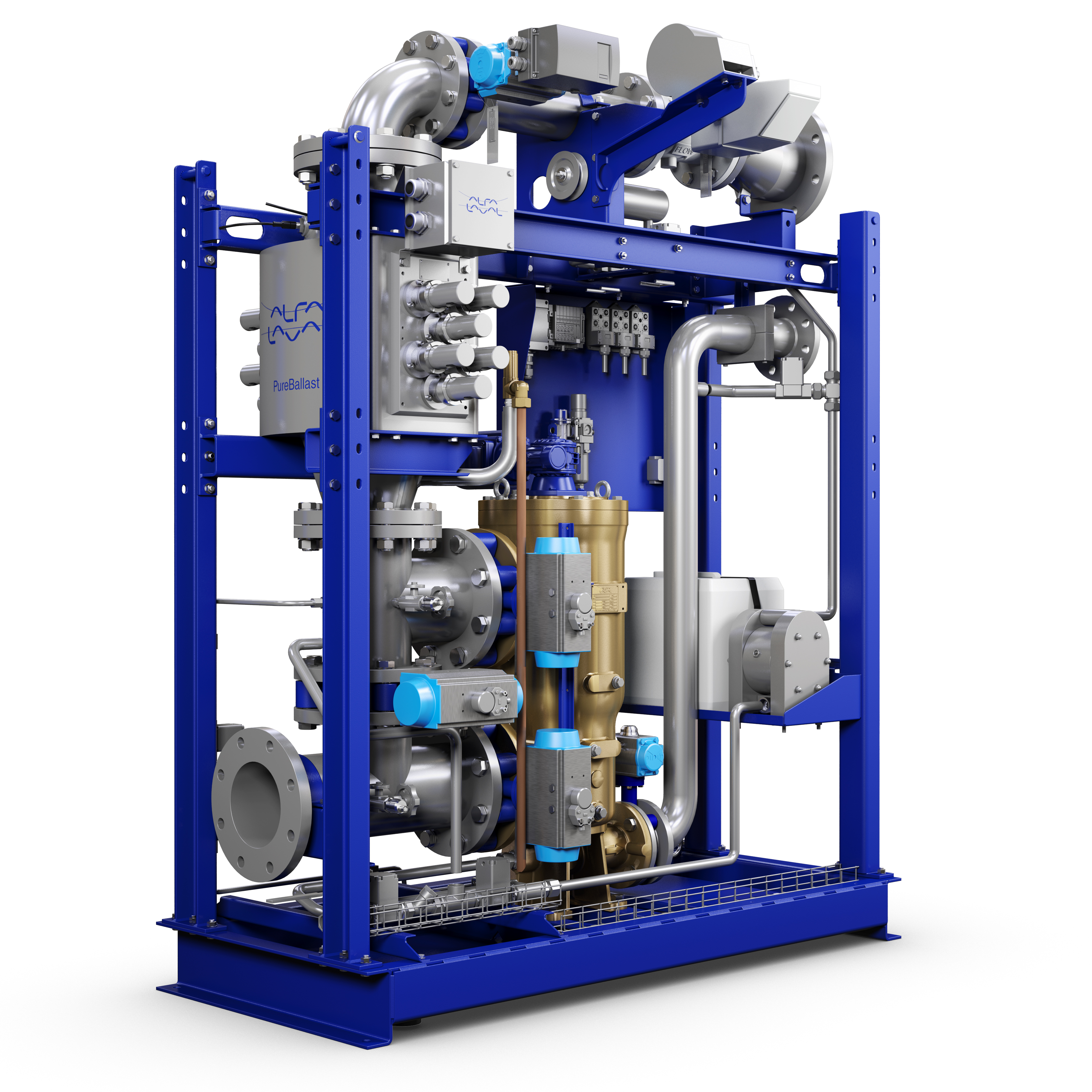 PureBallast 3 Exシステム(UVリアクター、フィルター、CIPユニット)の水流関連コンポーネントはデッキハウスに含まれていますが、ランプ駆動キャビネットと制御キャビネットはデッキハウス外の船舶の安全ゾーンに設置されます。
