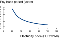 The graph shows a profitability analysis based on information from a supplier of organic Rankine cycle systems.